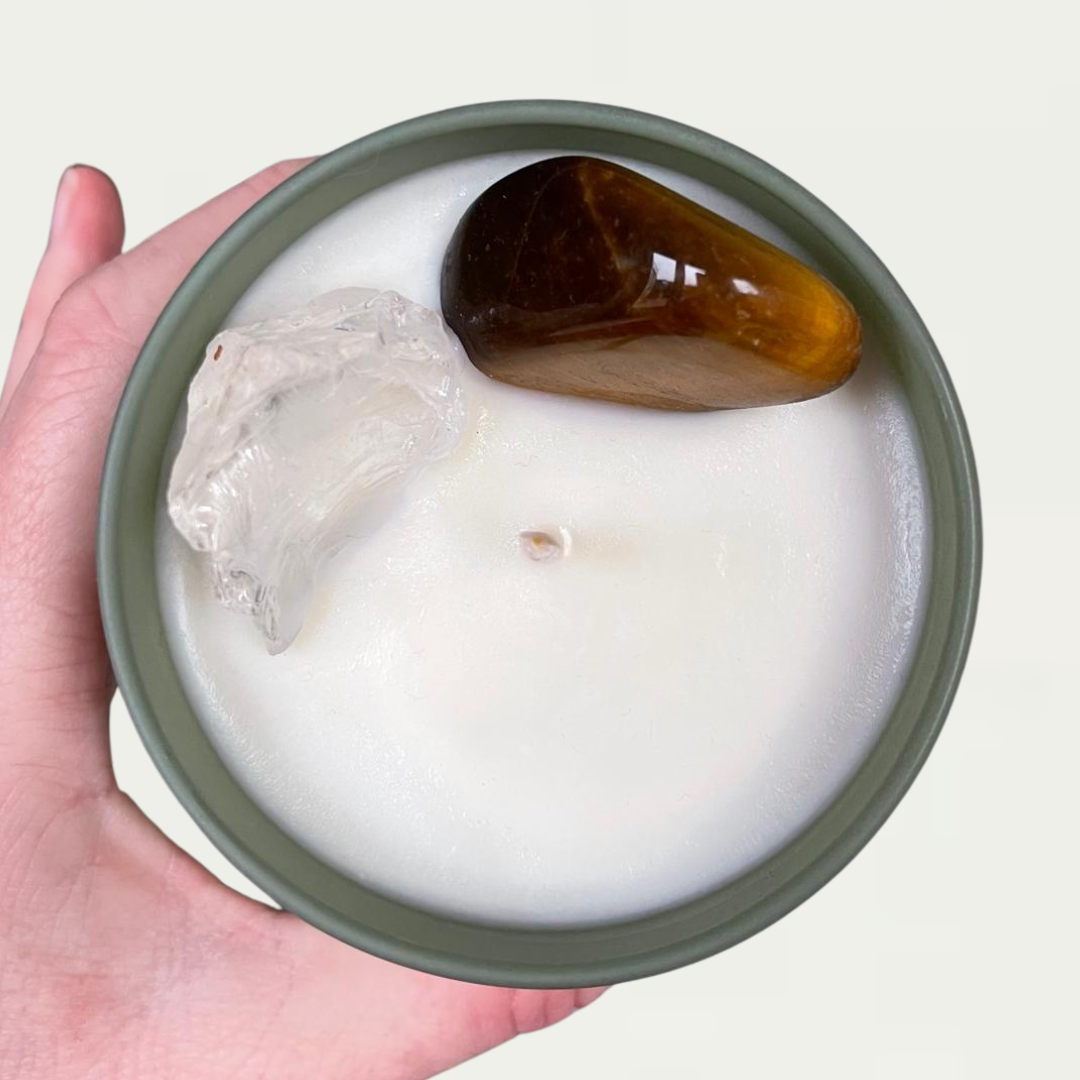 Cinnamon & Wild Orange - Edelstenen kaars - Tijgeroog - DoTerra essentiële olie